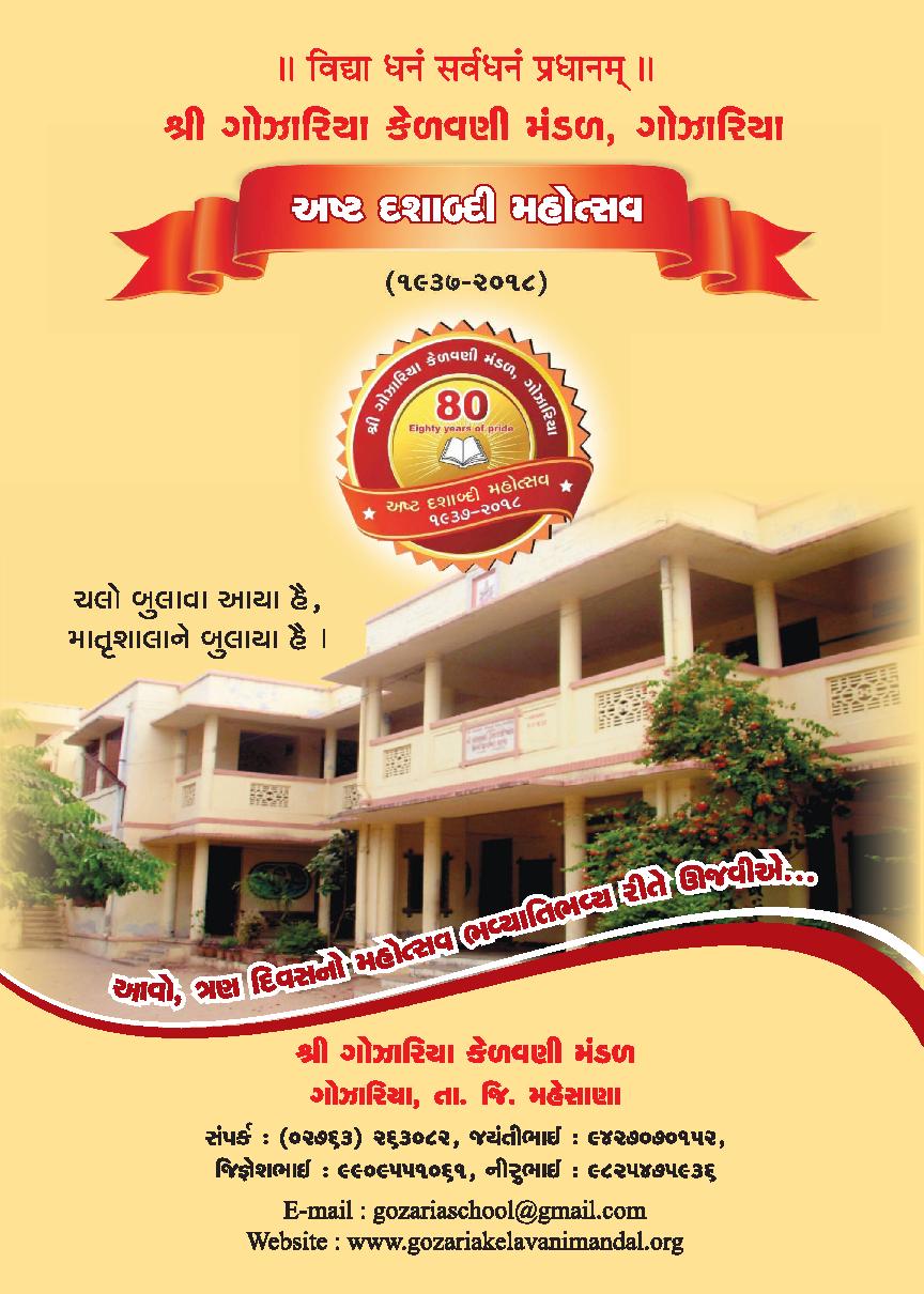 અષ્ટ દશાબ્દી મહોત્સવ આમંત્રણ પત્રિકા Click on Page To DownloadPost navigationPreviousPrevious post:ગોઝારિયા કેળવણી મંડળ સંચાલિત શૈક્ષણિક સંસ્થાઓમાં ગુરુપૂર્ણિમા પ્રસંગની ઉજવણી યોજાઈ.NextNext post:नीमा गर्ल्स आर्ट्स कोलेज, गोझारिया द्वारा प्रेमचंद जयंती के उपलक्ष्य में ‘कथाकार प्रेमचंद’ विषय पर सेमिनार का आयोजन किया गया ।Related postsFelicitation & Farewell Function of Sem.VI Celebrated ZealouslyApril 18, 2026World Water Day & Annual Prize DistributionApril 18, 2026State-Level One-Day Workshop Organized by NGAC, GozariaMarch 24, 2026Nima Girls Arts College Zealously Celebrates Vikas-SaptahOctober 17, 2024N.S.S Unit of NGAC, Gozaria Participates in the SHS Project of the State GovernmentOctober 4, 2024NGAC Celebrates the Birthday of the PM of India in a Unique MannerSeptember 18, 2024