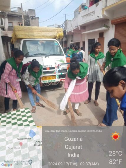Nima Girls Arts College celebrated the birthday of the great son of mother India and the Prime Minister of India Shri Narendrabhai Modi in a very unique style. Following the thoughts of Modiji the N.S.S unit attempted at doing something inspirational to others. The N.S.S volunteers of the college carried out a rally across the village with the banner highlighting the concept of cleanliness being the best service of pervading godliness. During the rally the volunteers carried out the acts of symbolic cleanliness and thereby inspired the onlookers to do the same for leading disease-free life. At the end of the programme in the college-room the students were led to swear of getting rid of uncleanliness and dirt in their respective villages and also to disseminate awareness among people regarding the role of cleanliness for leading healthy life. The entire programme got accomplished under the presiding guidance of the in-charge Principal Dr. Dharmendrasinh Vaghela. The entire programme was minutely led by the member of the Community Services Band- Dr. Narendrabhai Prajapati and the programme officer of the N.S.S unit Dr. Tushar Pandya.
