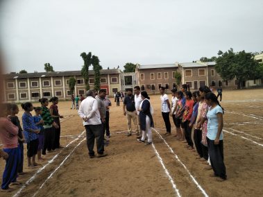 Nima Girls Arts College, Gozaria has a very extensive playground that is collectively used by the adjoining M.K. Patel High-school and A.S.J. Patel Higher Secondary school under the flag of the same managing body in the same education campus. As the timings of both the institutions are quite different, the same ground is used without any problem. Different events of sports such as Kabaddi, Kho-Kho, Weight-Lifting, Power-Lifting as well as athletics are participated by the students under the presiding guidance of the Physical Training Instructor of Nima Girls Arts College, Gozaria. The college has produced the outstanding sportspersons till the date. Because of the participation in sports and using the certificates of sports events many of the girl-students of the college have been able to join the police force also. Physical Training Instructor of the college and sports loving members of the sports committee till today have toiled their best to develop these grounds. The local sports committee of the present time bears two members: DR. Satyapal P. Prasad and DR. N.M. Daslaniya.